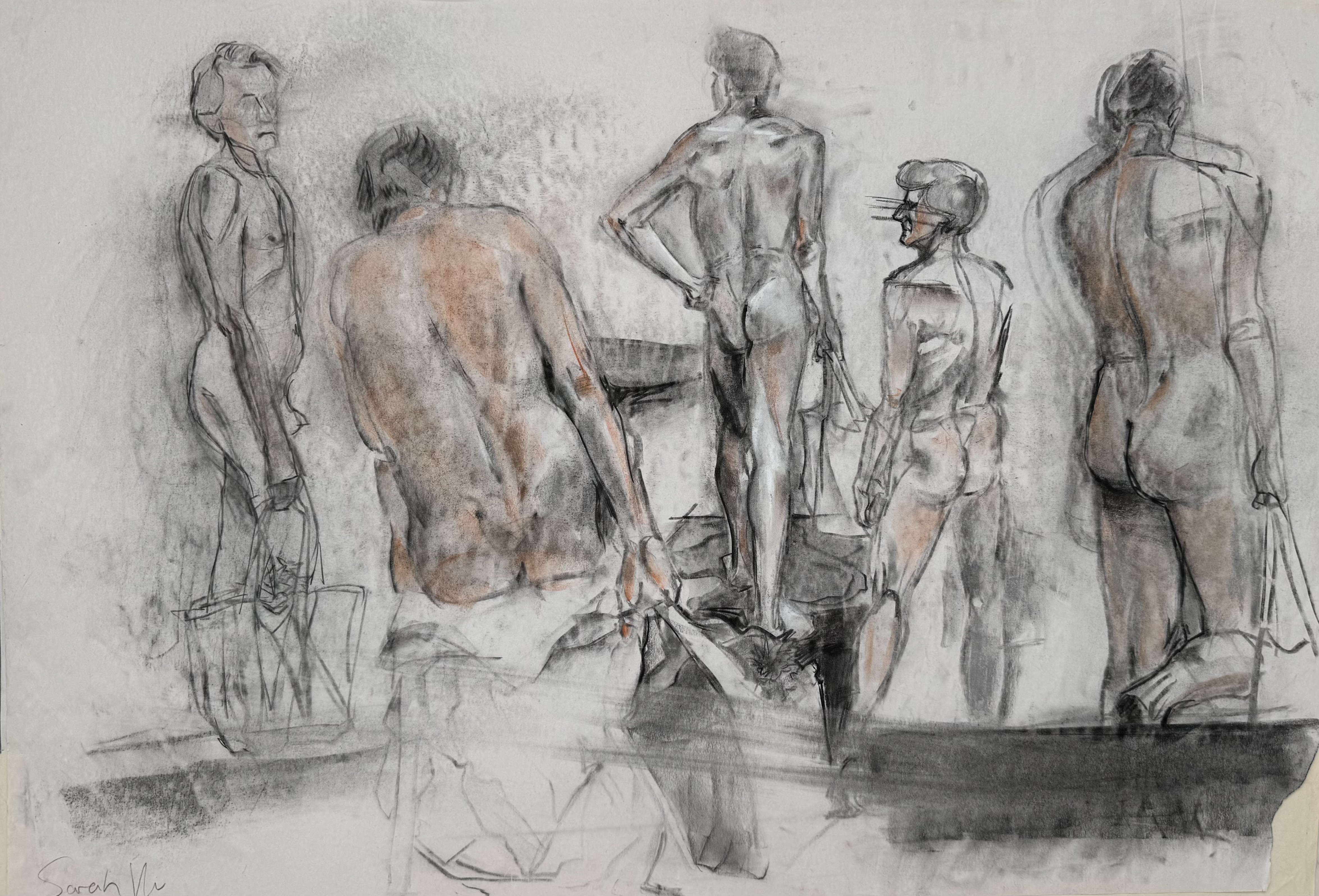 This work is a self-portrait by the artist, Sarah, exploring the expressive potential of light and form. The use of harsh, directional lighting creates a heightened sense of drama while emphasizing the structural planes of the face. Rooted in direct observation, the piece prioritizes what is visually perceived over preconceived notions, resulting in a study that is both disciplined and perceptually driven.